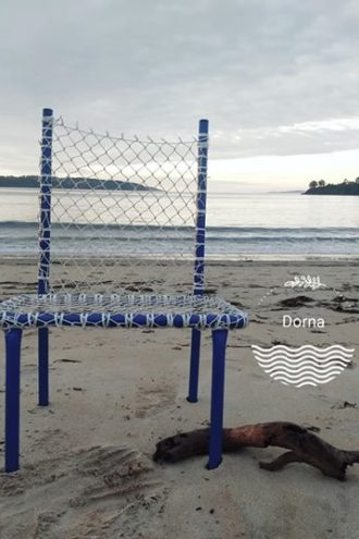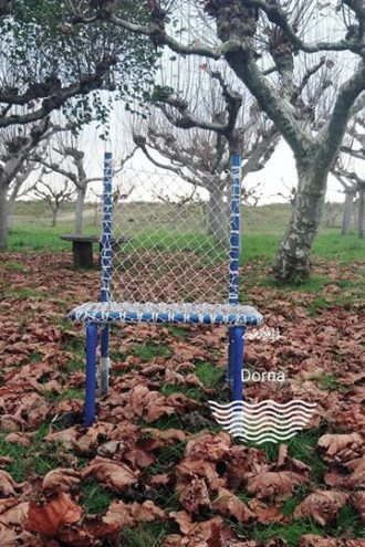 200,00€SILLA MUY MARINA hecha con red reutilizada de atunero y hierro de chatarra y atada por las rederas gallegas. -